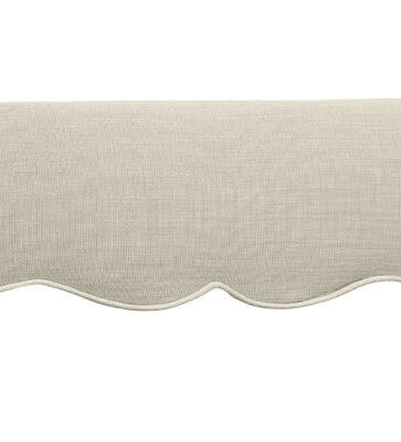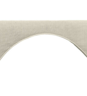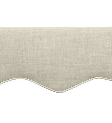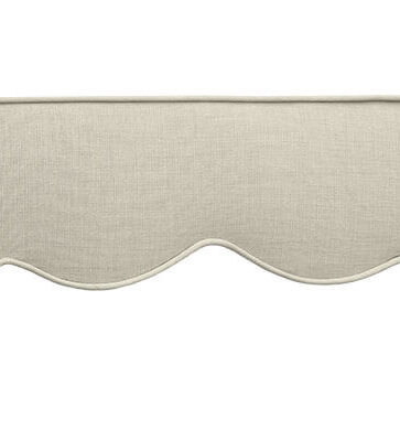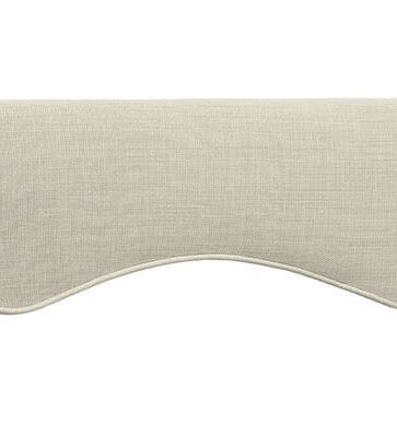 A padded cornice that features an intricate inset curved design with an upward center point.